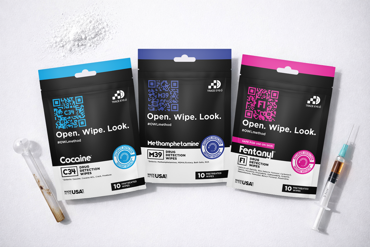 This product line exists to solve real-world threats without putting people in harm’s way. Trace-Eye-D empowers law enforcement, corrections, schools, and the military to detect drugs and explosive materials faster, safer, and more affordably—directly in the field. These wipes deliver instant, real-time identification so professionals can act with confidence, not risk.