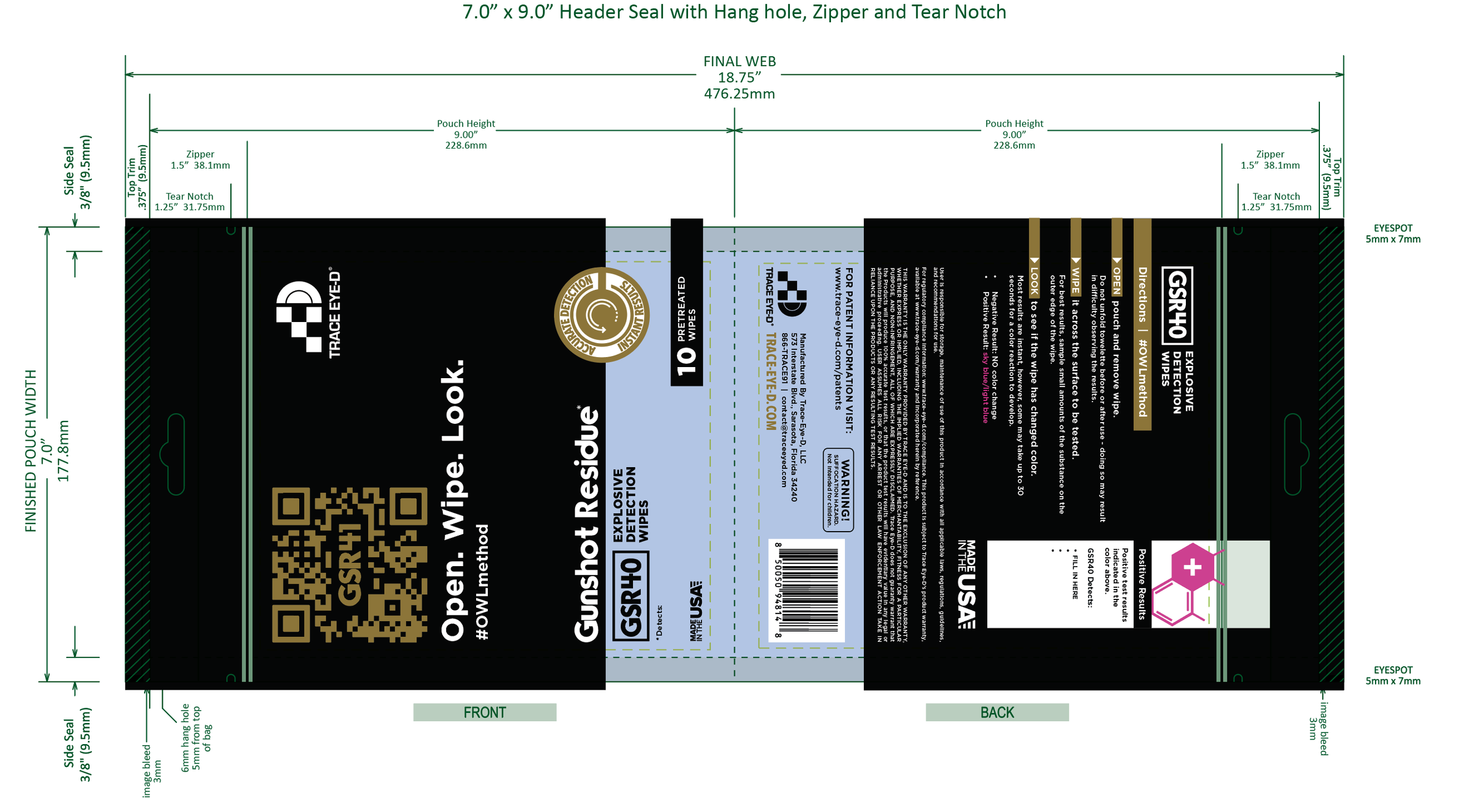 At the same time, the work extended far beyond design. The product line had to be engineered to run seamlessly on newly built manufacturing equipment, with pouch structures sized precisely to fit the machines, protect the wipes, and scale efficiently. Pack counts, material choices, and configurations were strategically planned to meet strict customer pricing requirements while remaining practical for distribution and field use.